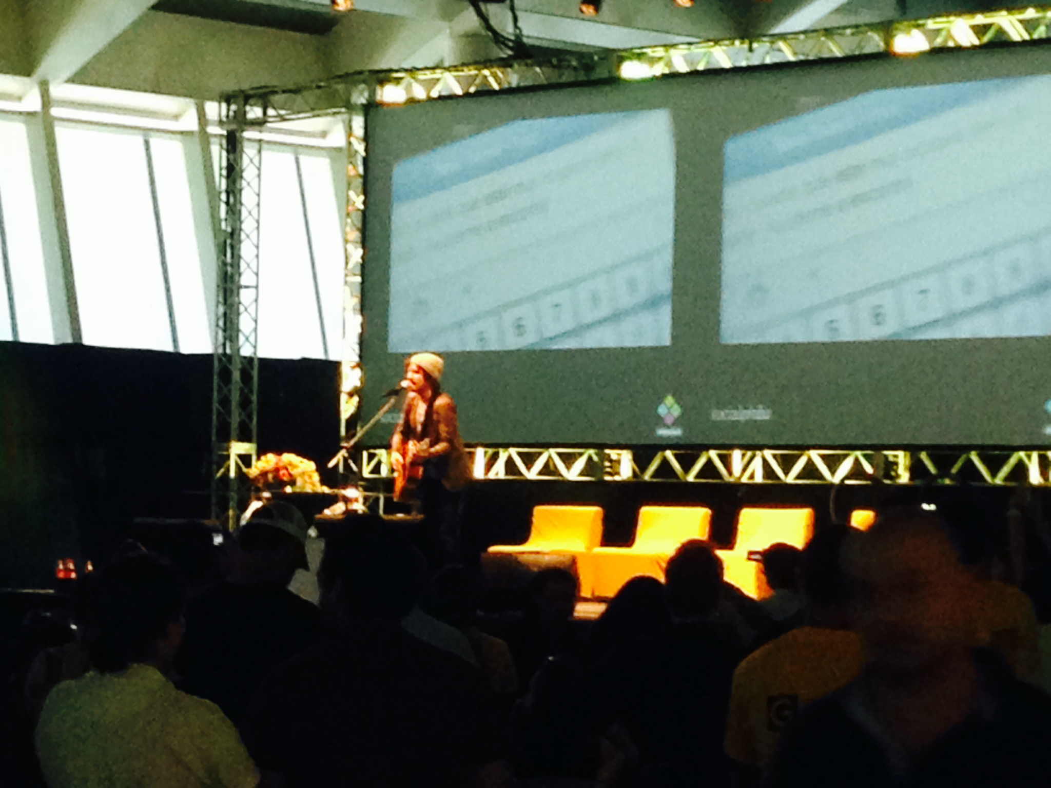 ¿Sentarme? Estaba todo lleno. En el salón probablemente habían unas doscientas sillas colocadas tipo teatro y estaban TODAS ocupadas. Todos los asistentes estaban atentos a “cómo rentabilizar su Social Media” al estilo de esta fan de la Coca Cola, única en su especie.