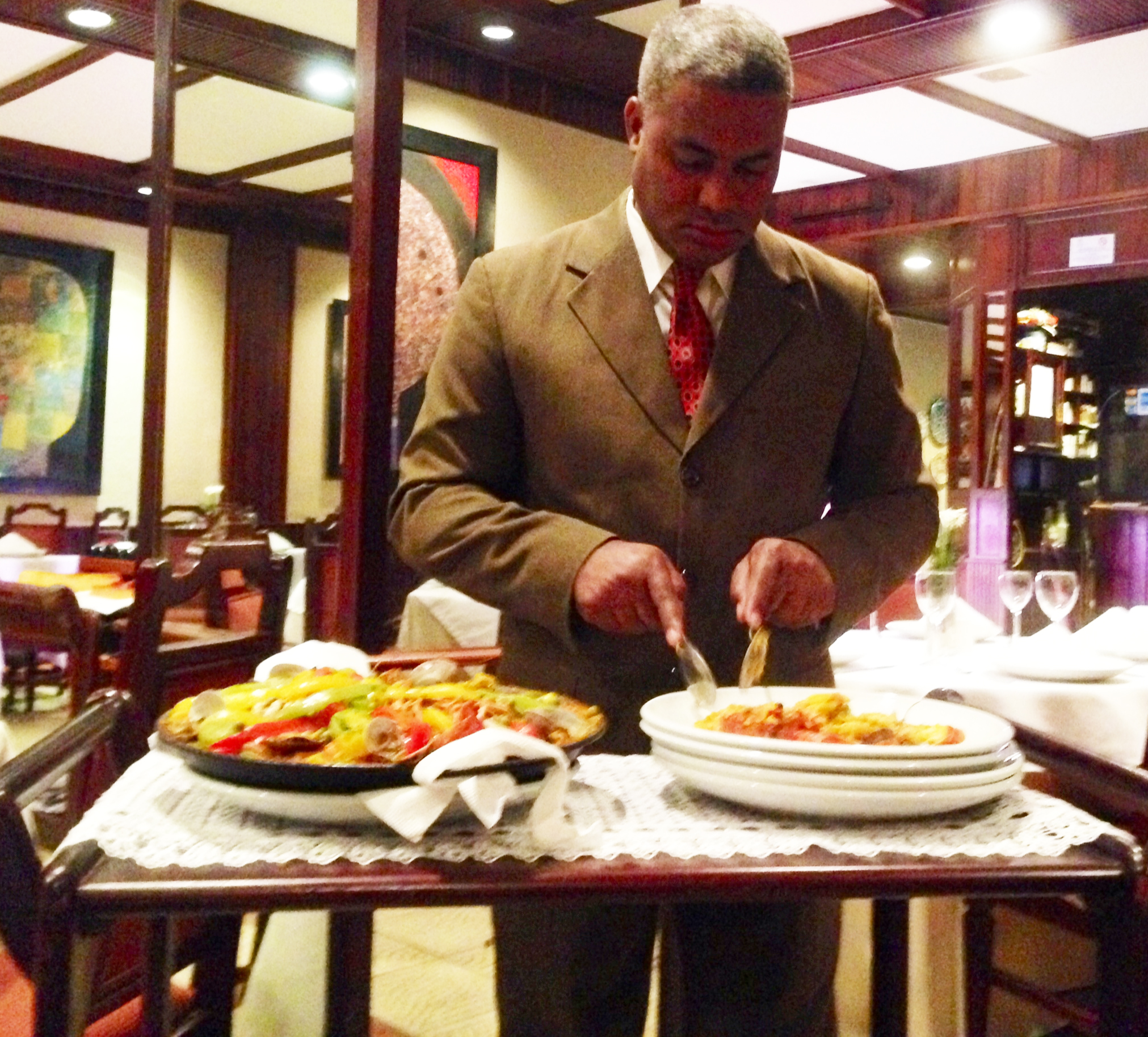 Ahora que estoy en la onda española fruto de mi dulce adicción a la serie de TV española Isabel, me apetecía comida española y hasta la ave. Independencia nos fuimos a comernos una excelente paella. Debo decirles que no pedimos entradas por temor a llenarnos antes de la comida, pero sirvieron como cortesía de la casa una pasta de pimientos que casi me como la pasta, los panes y el plato. ¡Qué rica!