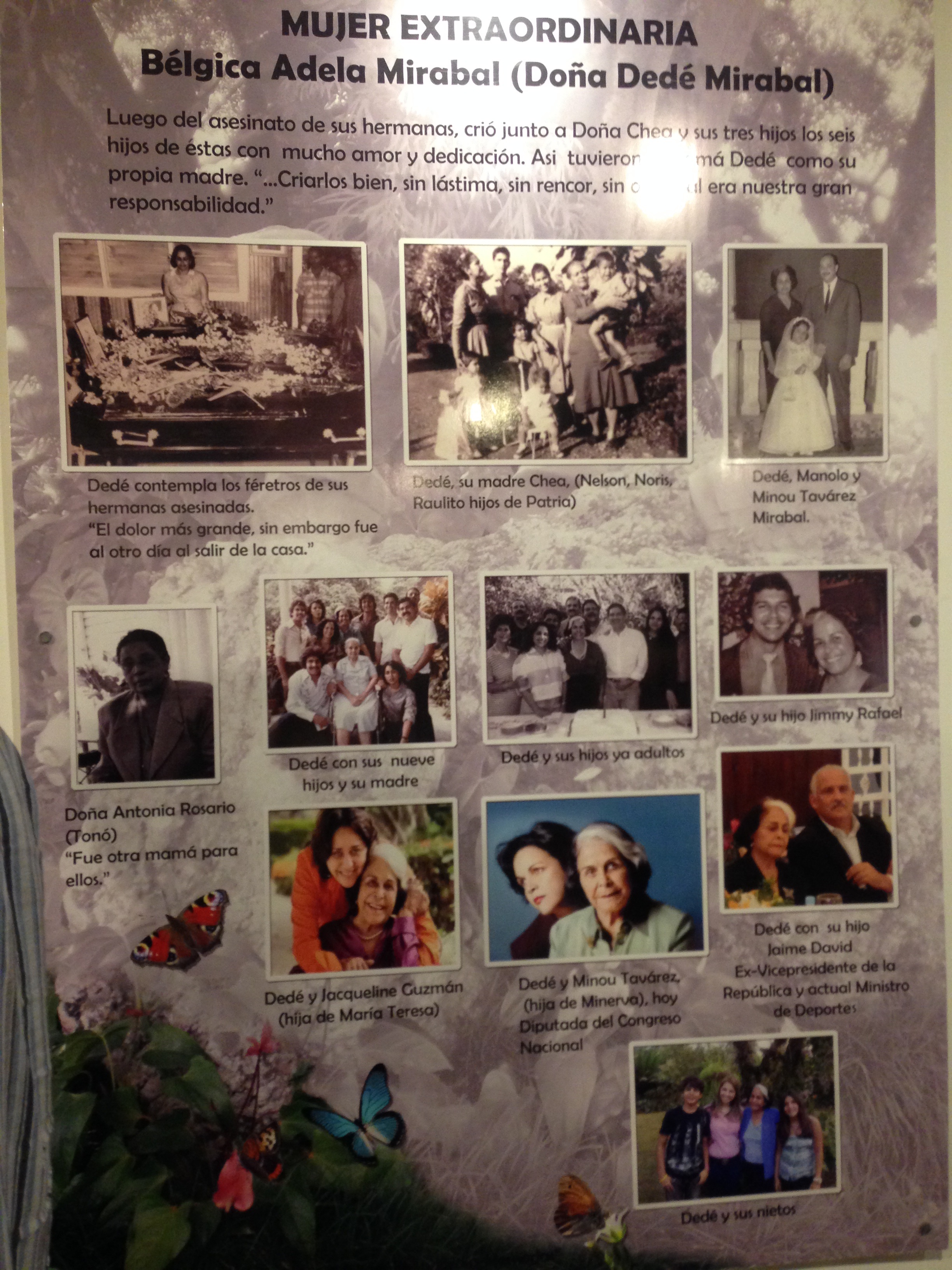 Mi reacción no fue otra que la de entrar inmediatamente y conocer cómo ya doña Dedé había pasado a otra perspectiva de la historia. En esta ocasión no se trataba de Patria, Minerva y María Teresa, este espacio era sólo de doña Dedé. Un espacio que se ganó con creces pero tenía que ser escrito sólo cuando ella emprendiera su vuelo. Y ahora, ¿cómo entrar a un espacio de las Mirabal donde ya la narradora no sería doña Dedé? Qué extraña sensación sentí en los segundos que me tomó entrar al pabellón.
