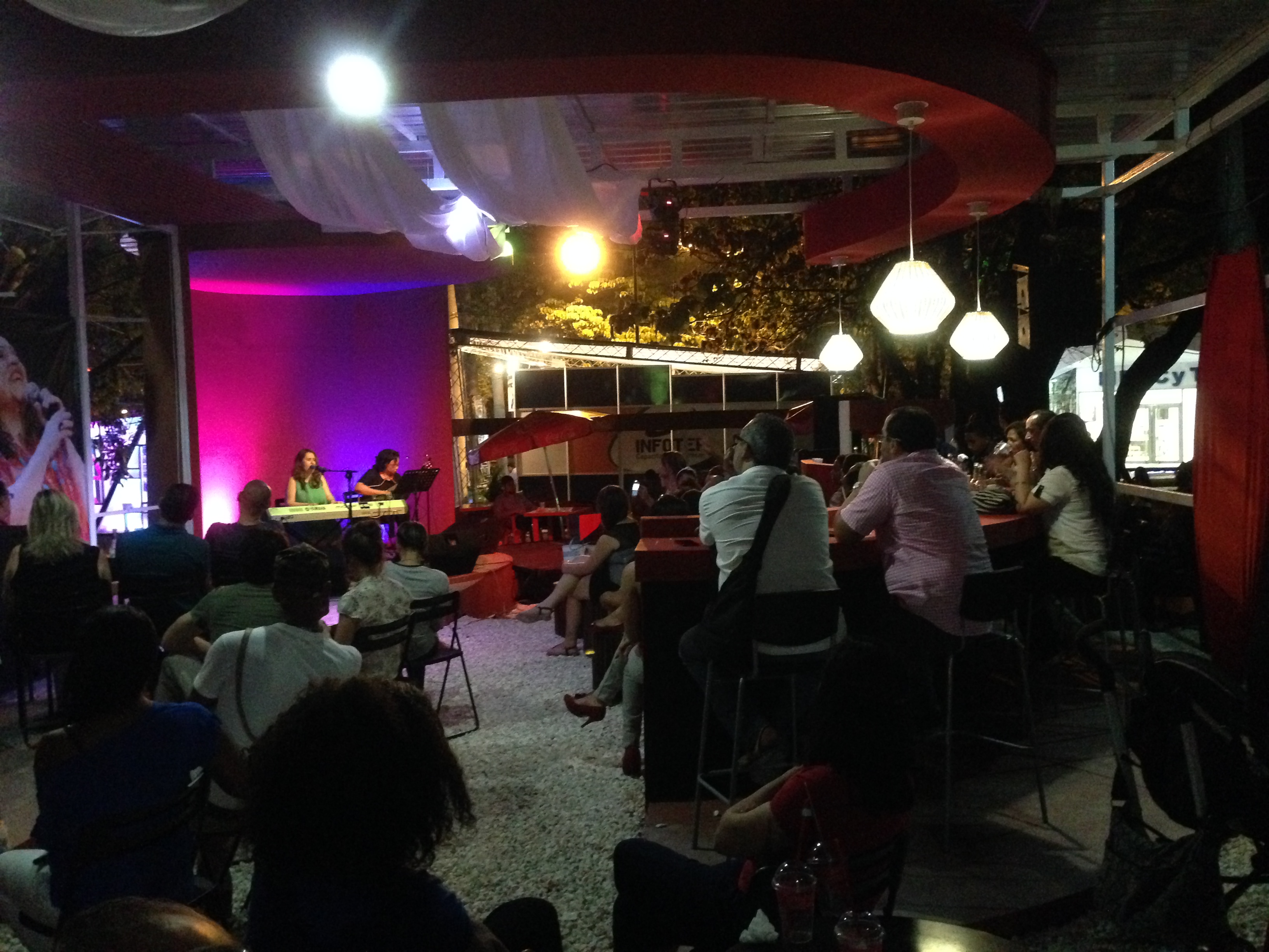 Mientras recorría la Feria del Libro una dulce voz me llevó hasta el Café Bohemio, que no es más que Casa de Teatro en la Feria. Aquí culminó mi recorrido de la noche. La intención inicial de hojear libros se convirtió en un hojear de sentimientos; primero doña Dedé Mirabal, ahora escuchar las notas de un piano acariciadas por una dulce voz panameña, me movió todas las sensibilidades. Nada, absolutamente nada, ni siquiera la oscuridad de un sol oculto hacía complicidad con la noche, la canción insistía en que era de tarde. Una tarde que ahora, más que nunca, lloraba y lo hacía por amor.