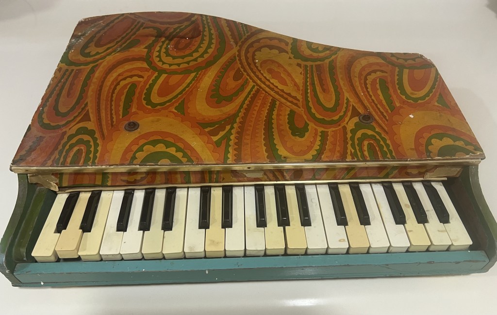 Aquel piano fue más que un juguete. Con sus tres patas blancas y un pequeño sillón se convirtió en mi pasatiempo favorito. Todo el día ofrecía conciertos imaginarios a mi familia, anotaba notas musicales en sus teclas con lápiz de carbón para memorizarme varias canciones y años más tarde lo compartí con mis hermanos y luego con mis hijas. Aunque ya está descolorido y sin patas, sigue sonando y transportándome a mi niñez.
